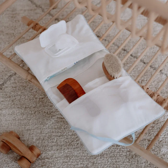 The set content is as follows; Care Bag Wet Wipes & Cloth Bag Product features: Material: Cotton Fabric Type: Poplin Paint: GOTS Certified Paint
