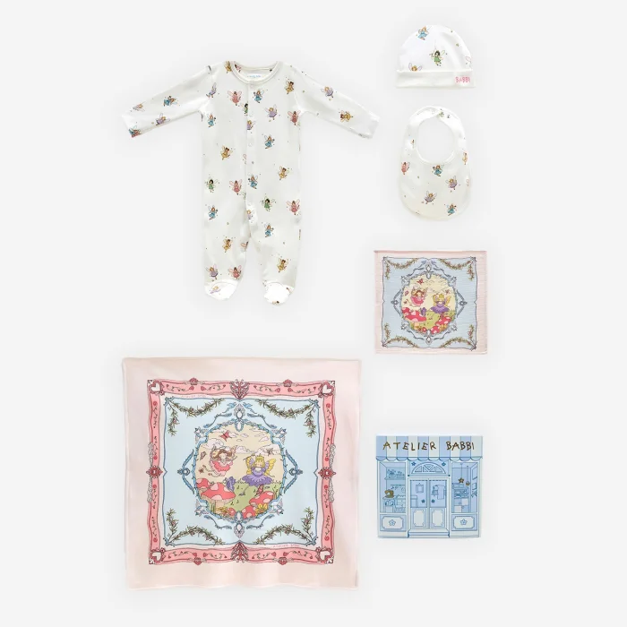 The set content is as follows; Overalls (0-3 months) Blanket (80x80 cm) Newborn Hat Newborn Gown Mouth Cloth (30x30 cm) Product features: Material: 100% Cotton Fabric Type: Interlock Paint: GOTS Certified Paint