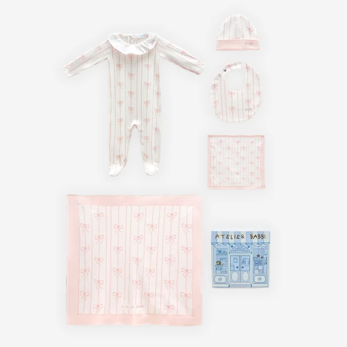 The set content is as follows; Overalls (0-3 months) Blanket (80x80 cm) Newborn Hat Newborn Gown Mouth Cloth (30x30 cm) Product features: Material: 100% Cotton Fabric Type: Interlock Paint: GOTS Certified Paint