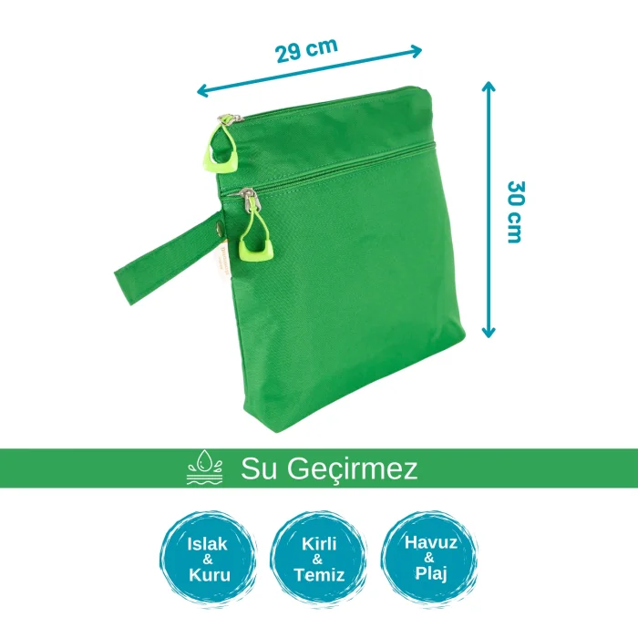 Thanks to its water-repellent exterior and waterproof inner lining, it allows you to separate your wet / dirty laundry from other items. It is made of special fabric that does not contain carcinogenic substances. It is suitable for Mother & Baby & Child & adult use. It has a large internal volume of 33 x 30 cm. It has two different zippered compartments. It has a writable name tag inside.