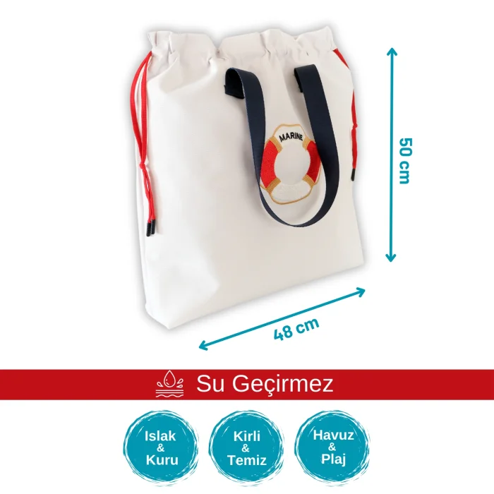 Versatile functional bags provide ease of use in many places such as wet / dry, dirty / clean, beach / pool, nursery. Made with tested, carcinogenic 100% polyester fabrics; Thanks to its water-repellent exterior and waterproof inner lining, you can easily carry dirty sportswear, damp swimsuits and beach toys. ; It's not just for wet and dirty items; toys, accessories, toiletries, electronics, travel and more; It is an alternative to single-use plastic bags. ; It can be used as a dirty bag for forest schools. ; While it complements your elegance with its unique design, it will be indispensable with its ease of use. ; It is suitable for Mother & Baby & Child & adult use; It has a large internal volume of 49x47cm. ; You can wash it in the washing machine with cold water in a short program, and you can hang it to dry. ;
