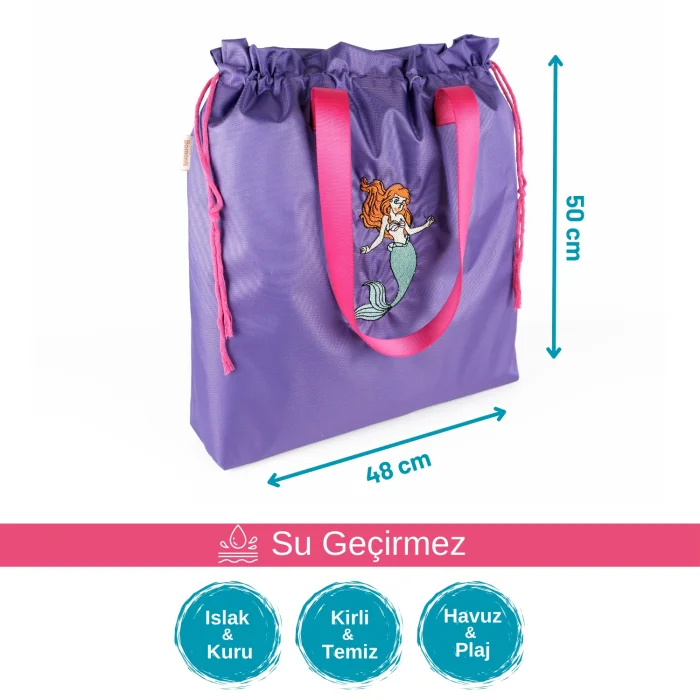 Versatile functional bags provide ease of use in many places such as wet / dry, dirty / clean, beach / pool, nursery. Made with tested, carcinogenic 100% polyester fabrics; Thanks to its water-repellent exterior and waterproof inner lining, you can easily carry dirty sportswear, damp swimsuits and beach toys. ; It's not just for wet and dirty items; toys, accessories, toiletries, electronics, travel and more; It is an alternative to single-use plastic bags. ; It can be used as a dirty bag for forest schools. ; While it complements your elegance with its unique design, it will be indispensable with its ease of use. ; It is suitable for Mother & Baby & Child & adult use; It has a large internal volume of 49x47cm. ; You can wash it in the washing machine with cold water in a short program, and you can hang it to dry. ;