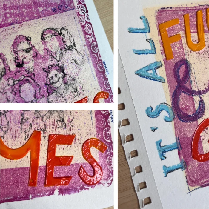 Gel sheet printing + mixed media