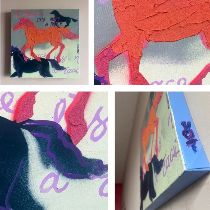 Acrylic, spray paint, embossed texture