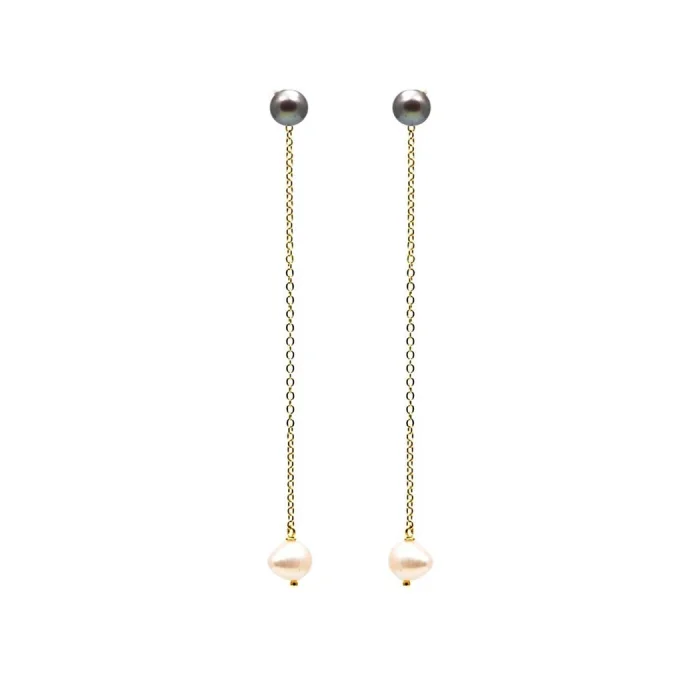 Dangle earrings with gold-plated freshwater pearls on brass The length of the earring is 7 cm.