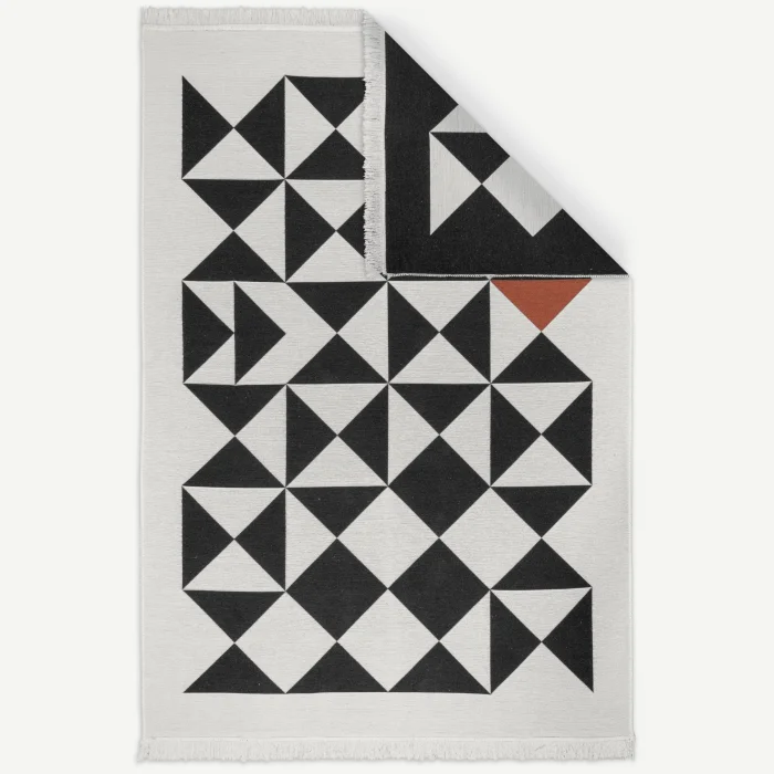 Cross Major Flat Weave Mid Century Rug Black Geometric Retro Area Accent Runner Rug Designer : Uğur Şayan Machine-woven reversible rug from recycled cotton. Reversible design. Its Vegan, by the way :) Rugs are in this collection; made with recycled cotton, natural cotton and fibers. Origin - Turkey This product is a Retrospektif™ group product.