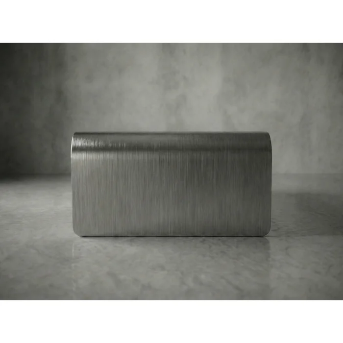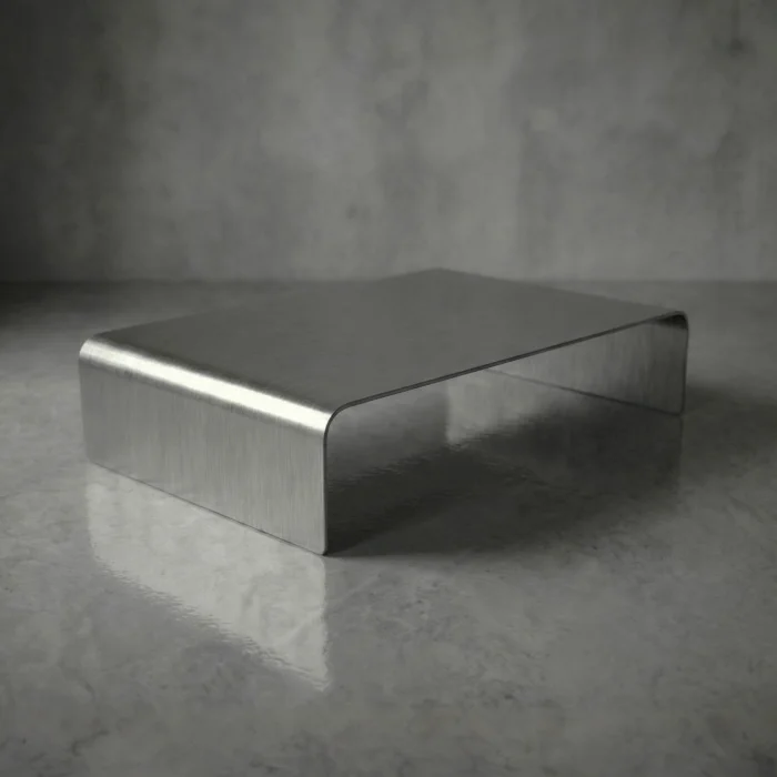 Made of high quality satin stainless steel, Mensa is produced by cutting 3 mm metal plates with CNC laser and shaping them by radius with a pressurized cylinder.