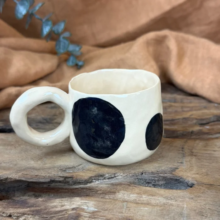 Product: Handcrafted Ceramic Mug - Black Polka Dots, 160 Ml, Stoneware