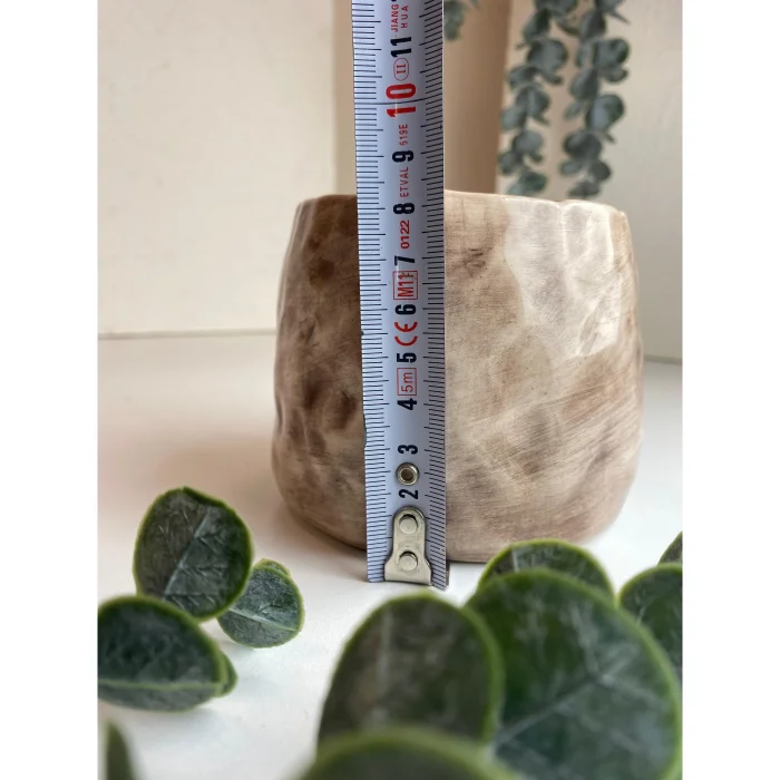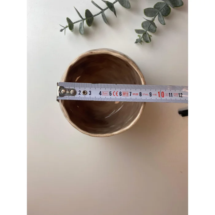 Measures 13 cm in height with the lid, 8 cm without the lid, and 8 cm in diameter.