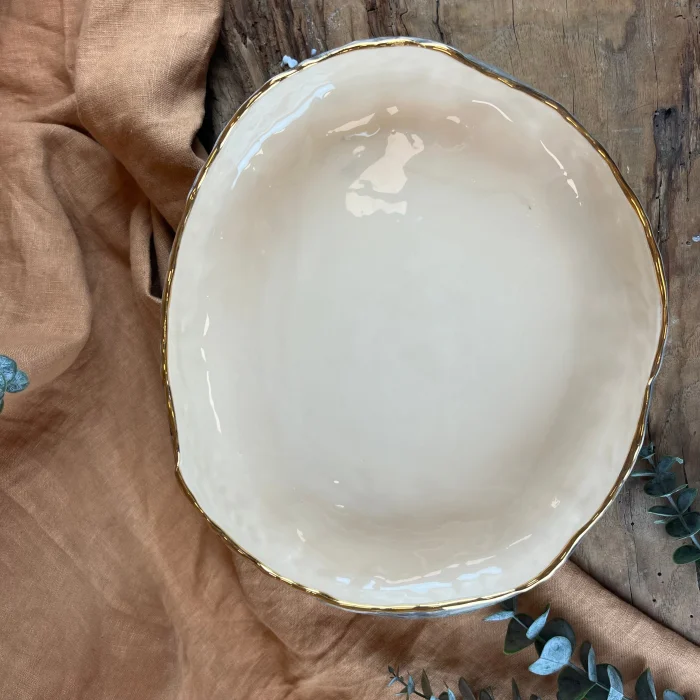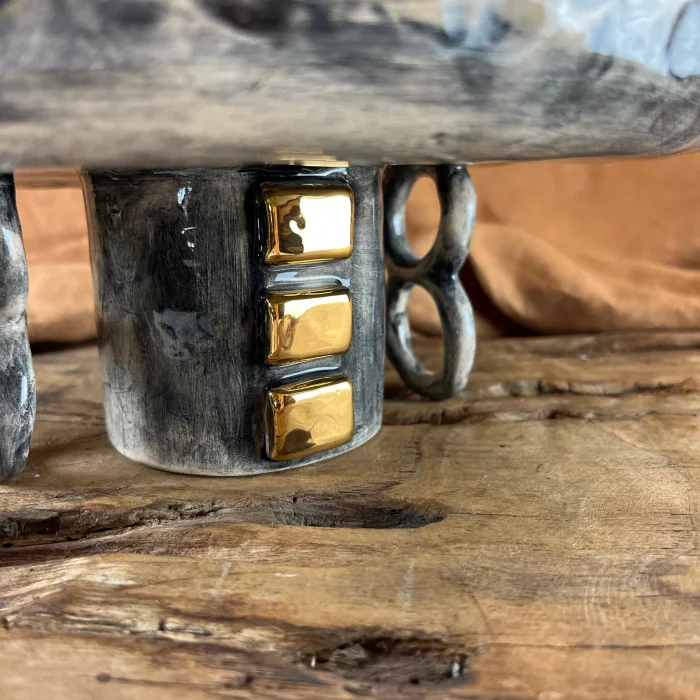 The combination of gold accents and handcrafted form creates a refined, timeless aesthetic.