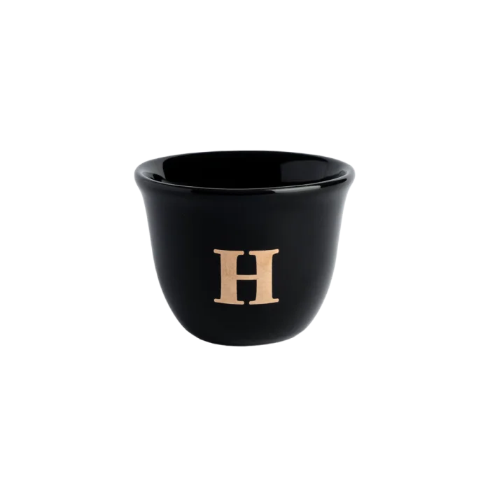 Handmade monogram espresso cup with gold detail.
