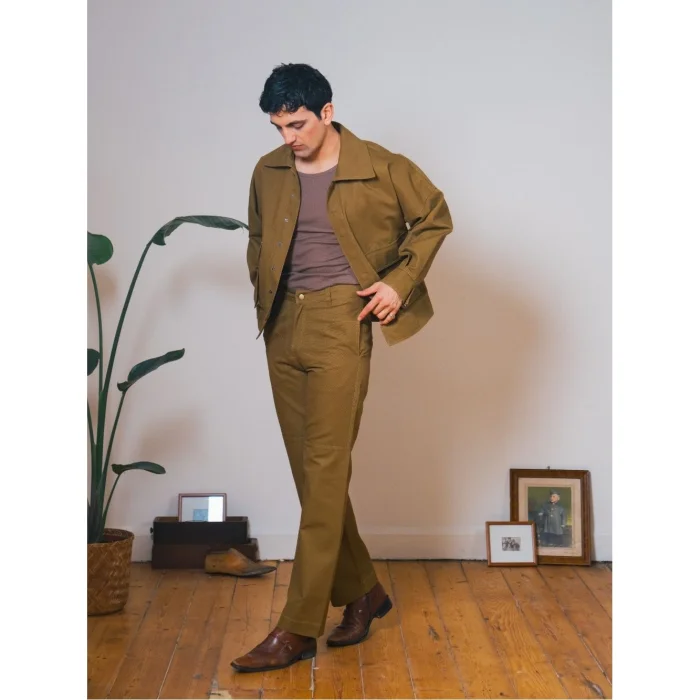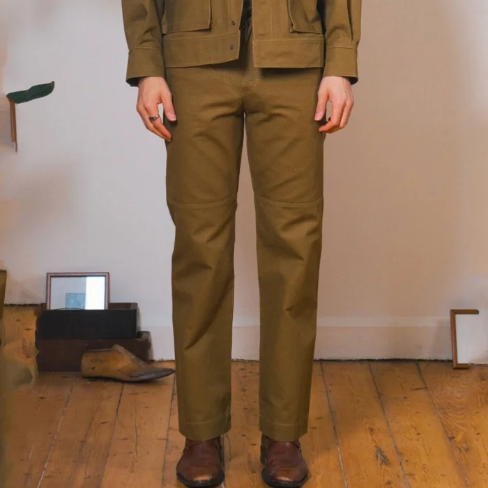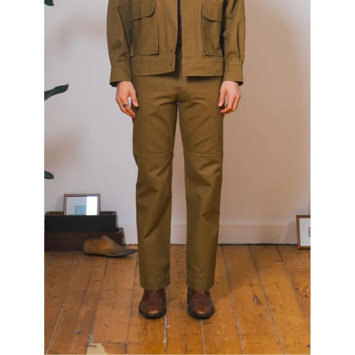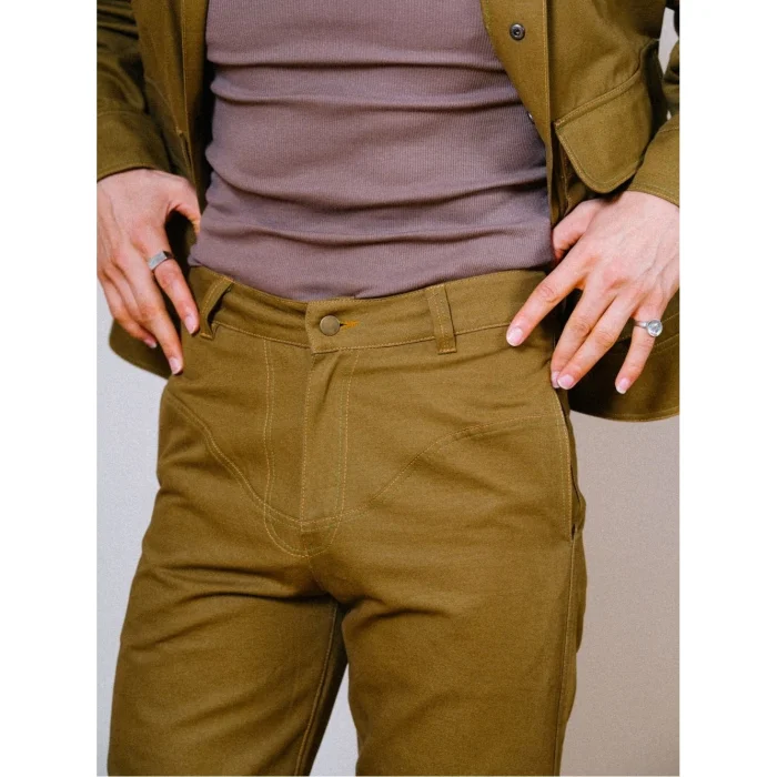 Combining style and comfort, these high-waisted canvas trousers make an assertive statement with their sharp and structured form. It offers daily elegance and comfort together.