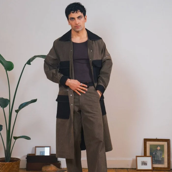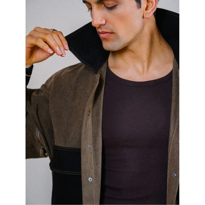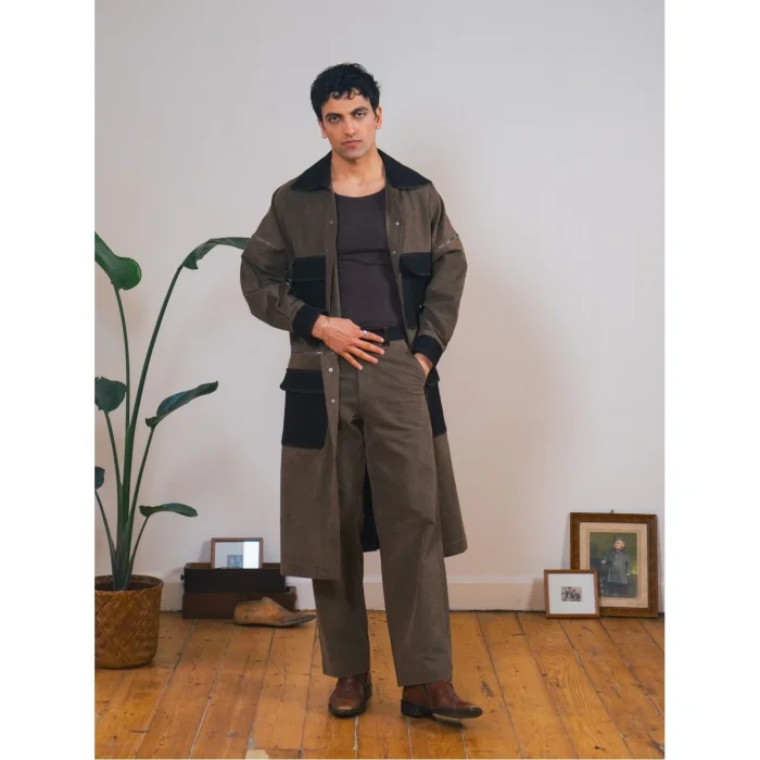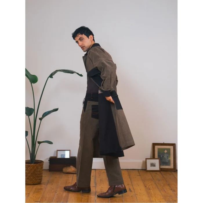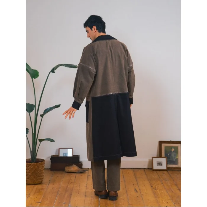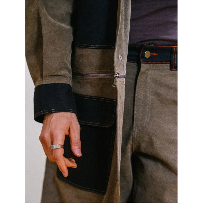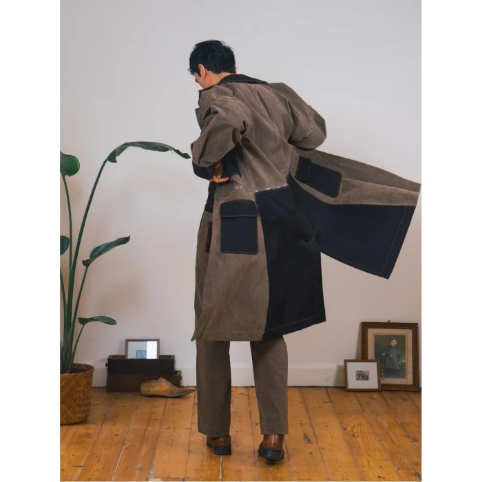 This convertible oversize jacket offers many style options. You can wear it with the sleeves for a classic look, remove the bottom for a modern touch, use it as a traditional jacket, or opt for a sleeveless long shirt.