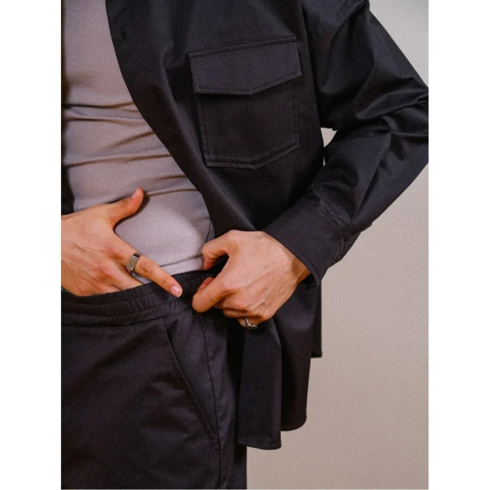 A comfortable and stylish combination. Sleeveless oversized shirts and elasticated trousers offer comfort and style together.