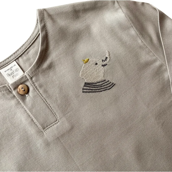• 100% organic cotton flannel fabric – Certified • Organic embroidery detail • Olive wooden button on collar • Loose fit • Made in Turkey