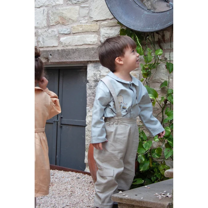 • 100% organic cotton flannel fabric – Certified • Organic embroidery detail • Collar detail • Wooden buttons on the front closure • Loose fit • Made in Turkey