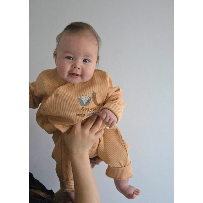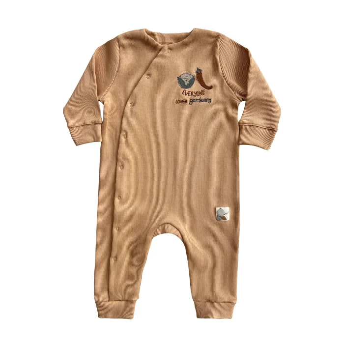 • 95% organic cotton 5% elastane ribbed fabric – Certified • Full-length snaps on the front closure • Organic embroidery detail • Made in Turkey.