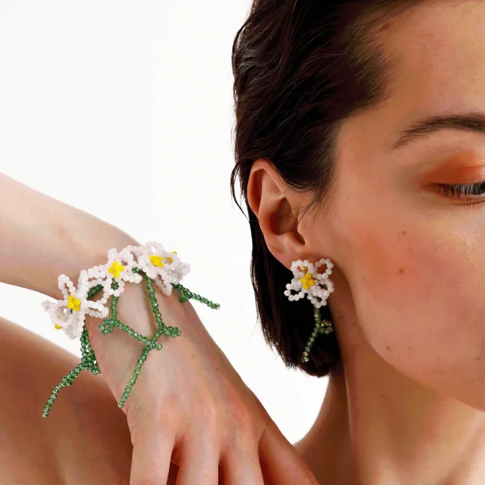 It is produced by knitting millimetric crystal beads with a fishing line with a resistance capacity of 8+kg.