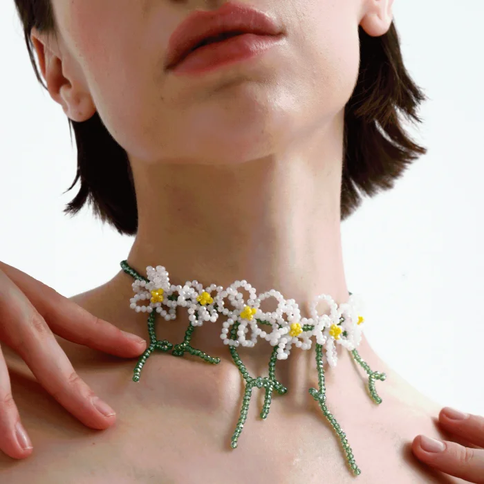 It is produced by knitting millimetric crystal beads with a fishing line with a resistance capacity of 8+kg.