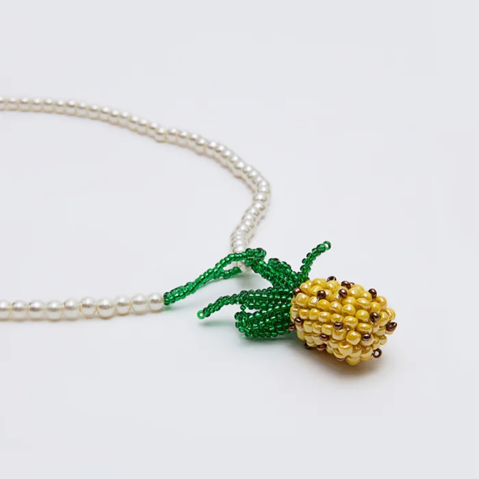 It is formed by knitting millimetric glass sand beads with fishing line for long hours. Custom design, Handmade.