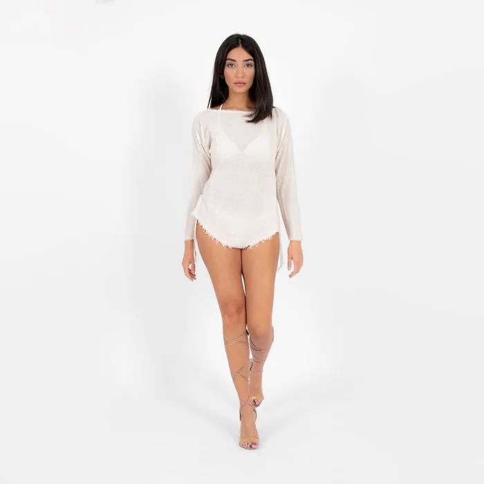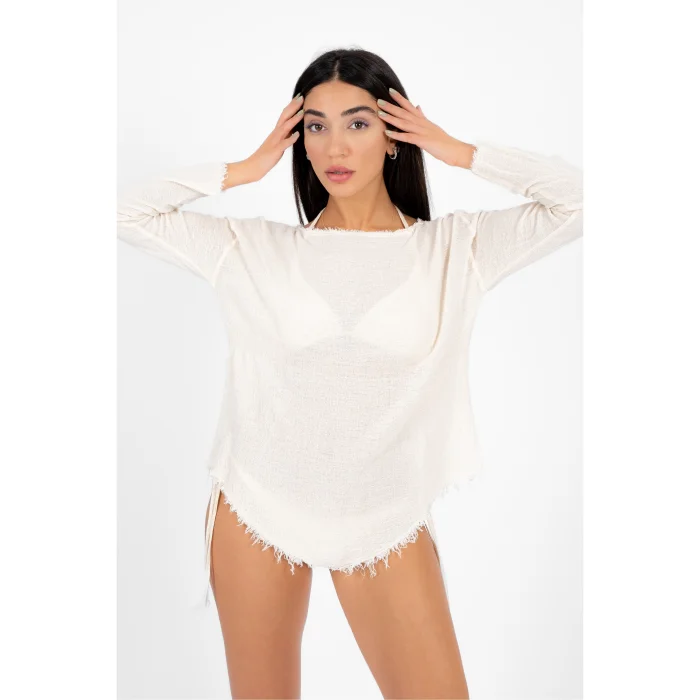 Product Information: Thin, transparent, tufted ornamental stitching, soft textured 100% cotton long sleeve mini dress. You will feel the natural pure elegance of ancient times with this product, which will allow you to feel the glow of the sun and the breeze of the wind on your skin with the thin, light, fluid structure and soft texture of its fabric woven on a wooden loom.
