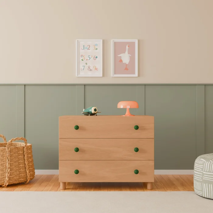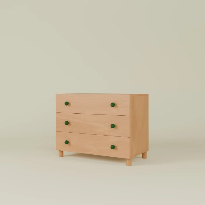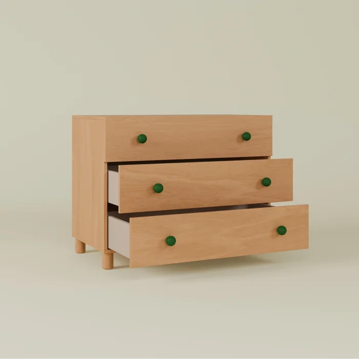 Drawer handles are painted with EN-71 certified water-based lacquer on Solid Beech.