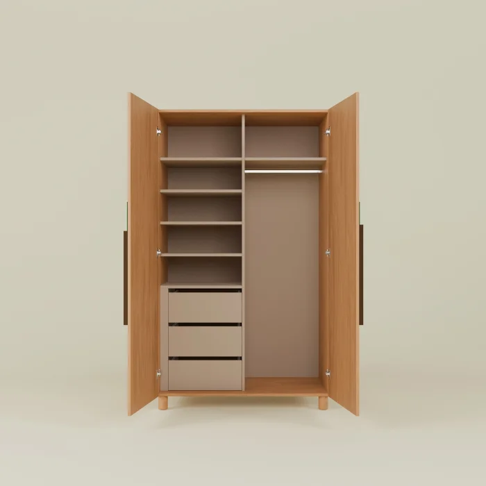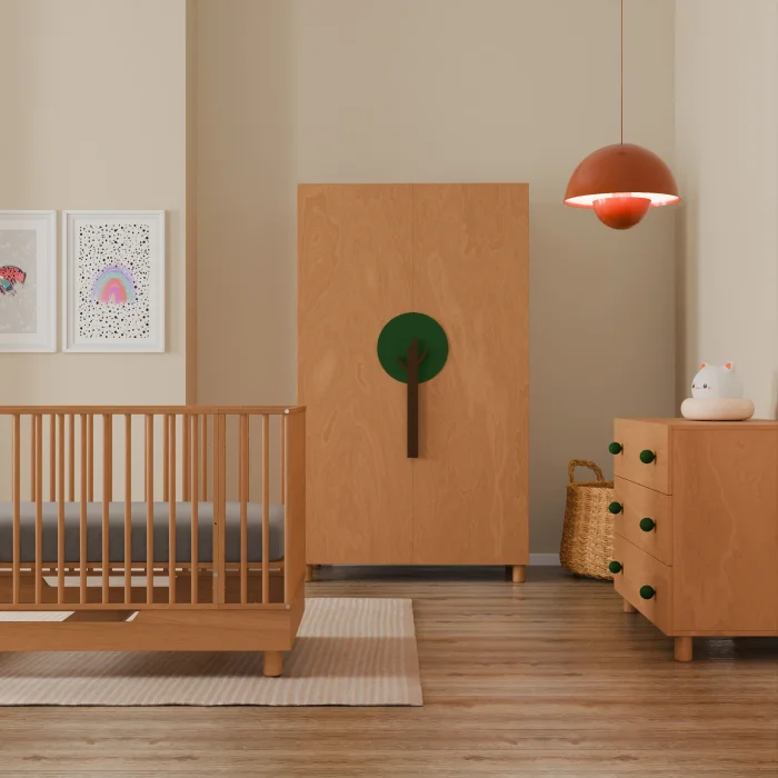 Our wardrobe, 1. It is made of Real Beech Veneer material on grade MDF. Real Beech Veneer or 1. Class MdfLam is used. All the hinge and drawer rails we use are Stopper system, which allows the doors to close quietly and smoothly, thus minimizing the risk of your fingers getting stuck. Since EN-71 certified water-based polish is used to protect the outer body, it does not contain any substances harmful to your and your little one's health and nature. Lid handles 1. It is painted with EN-71 certified water-based lacquer on class MDF. It is free of splinters, sharp edges and sharp corners that can cause physical harm.