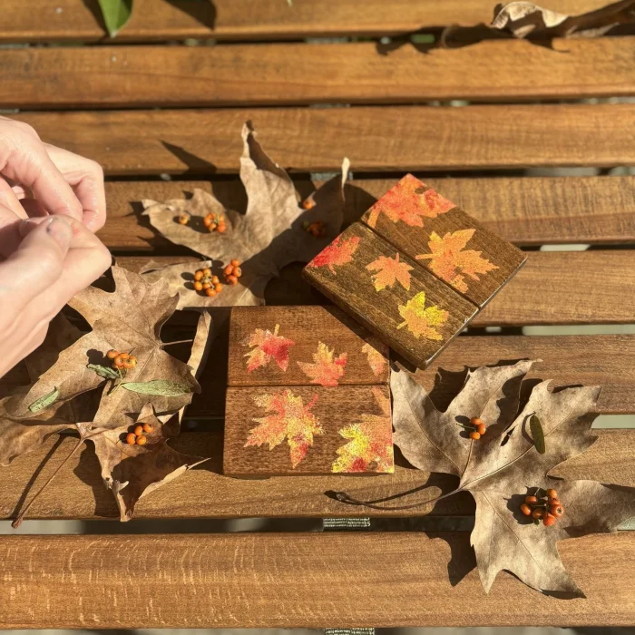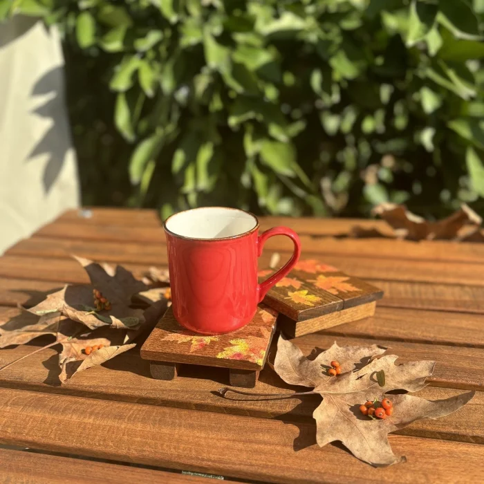 Autumn-themed coasters, which we produce from the highest quality beech wood and color one by one with water-based acrylic paints, turn into warm memories with your hot coffee. It is also a perfect handcrafted alternative as a gift for your loved ones.