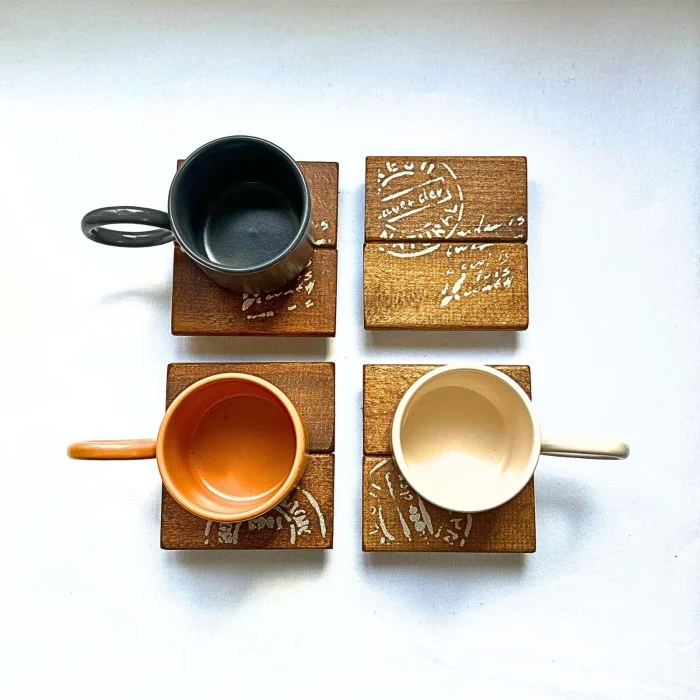 Product: Set Of 4 Wooden - Handmade Coasters Patterned