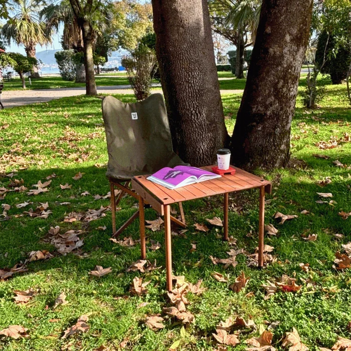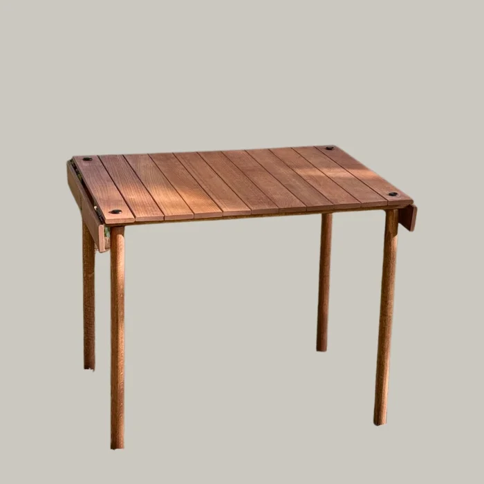 We designed the Bag the Joy Wooden Camping Table in such a way that when folded, the table becomes a roll and reaches the dimensions of standard camping chairs with its legs. In this way, it fits easily in your luggage in its special bag and is easily carried on your shoulder.