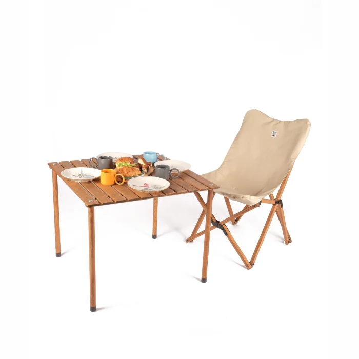 BAG THE JOY WOODEN FOLDING TABLE CHAIR SET – 50 * 50 * 55cm BROWN – BEIGE