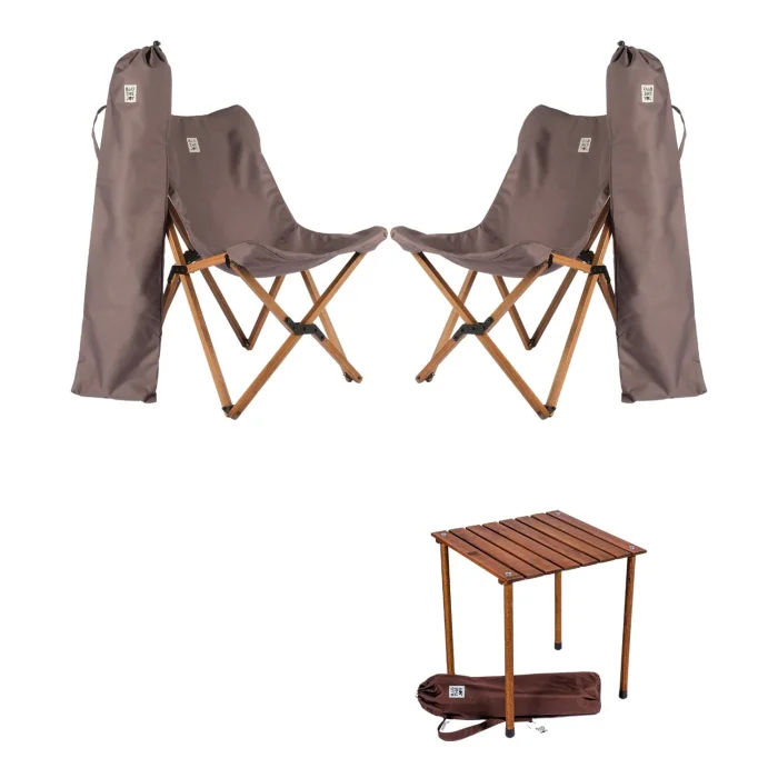 BAG THE JOY Wooden Roll Folding Camping and Picnic Table and BAG THE JOY Wooden Folding Camping and Garden Chair with Replaceable Cover and Bag, which allows you to enjoy the outdoors wherever you want, It will be indispensable for nature holidays, garden pleasure and picnics.