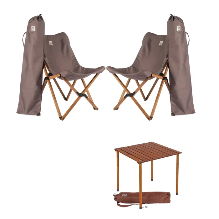 BAG THE JOY Wooden Roll Folding Camping and Picnic Table and BAG THE JOY Wooden Folding Camping and Garden Chair with Replaceable Cover and Bag, which allows you to enjoy the outdoors wherever you want, It will be indispensable for nature holidays, garden pleasure and picnics.