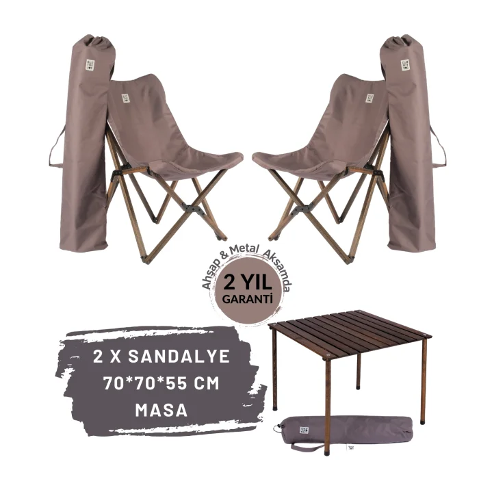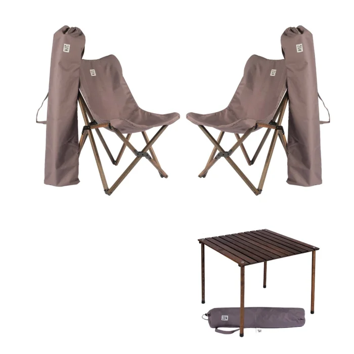 BAG THE JOY Wooden Roll Folding Camping and Picnic Table and BAG THE JOY Wooden Folding Camping and Garden Chair with Replaceable Cover and Bag, which allows you to enjoy the outdoors wherever you want, It will be indispensable for nature holidays, garden pleasure and picnics.