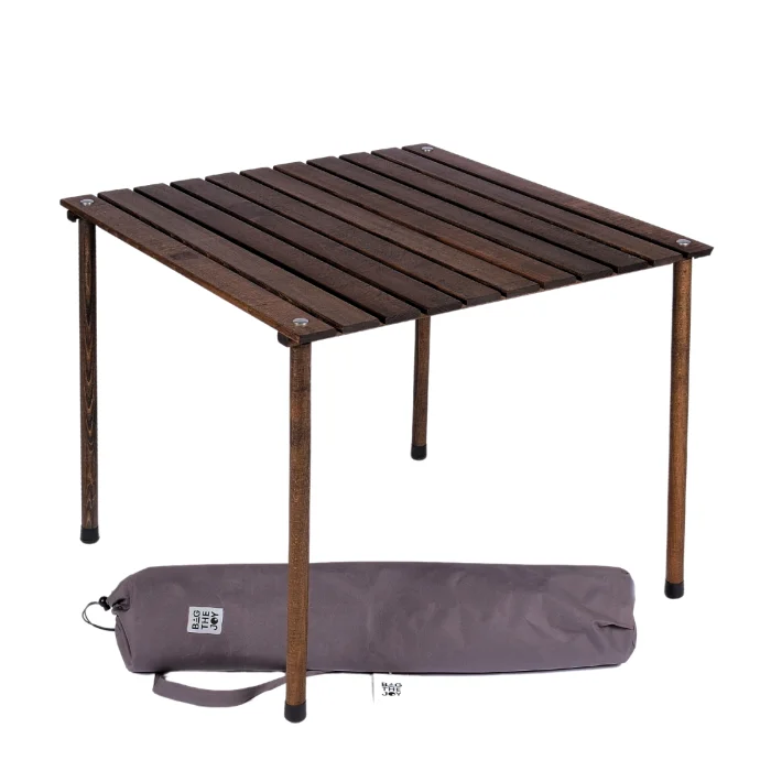 You can easily set up the BAG THE JOY Wooden Camping and Picnic Table in 1 minute without using any tools, thanks to the screws embedded in the feet. In every environment where outdoor pleasure is experienced; You can use it comfortably with your loved ones at dinner, at your celebrations, while working or playing, on your caravan holiday, camping, picnic, on the beach, on the terrace, in the garden and on your balcony.