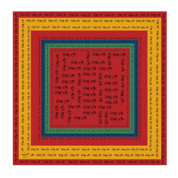 A striking silk scarf with ancient cuneiform lettering.
