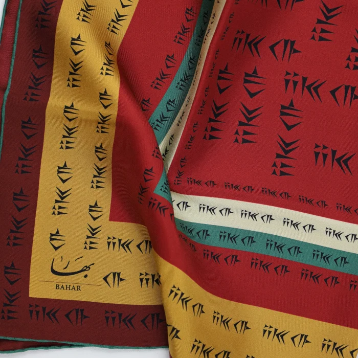 A striking silk scarf with ancient Persian cuneiform lettering.