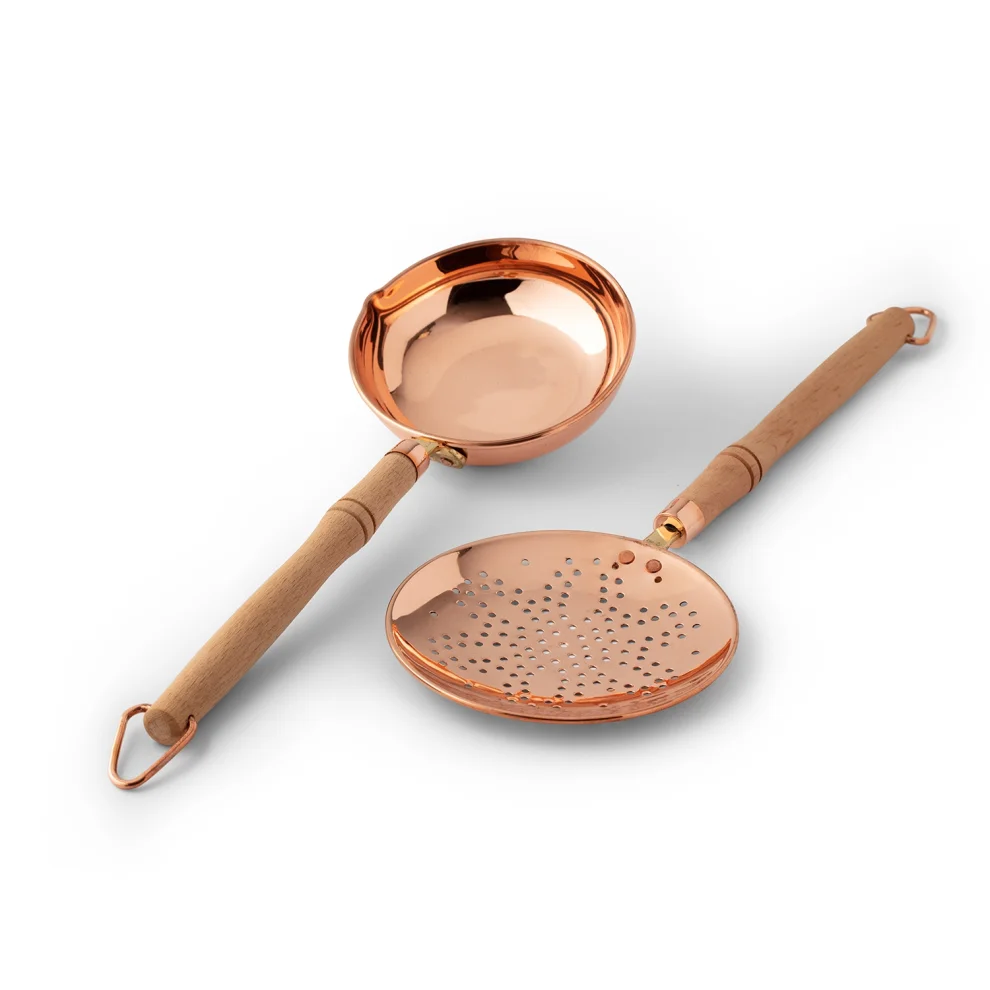 Length 19 cm/ Width 10.5 Material: copper body, wooden handle Suitable for hot use.