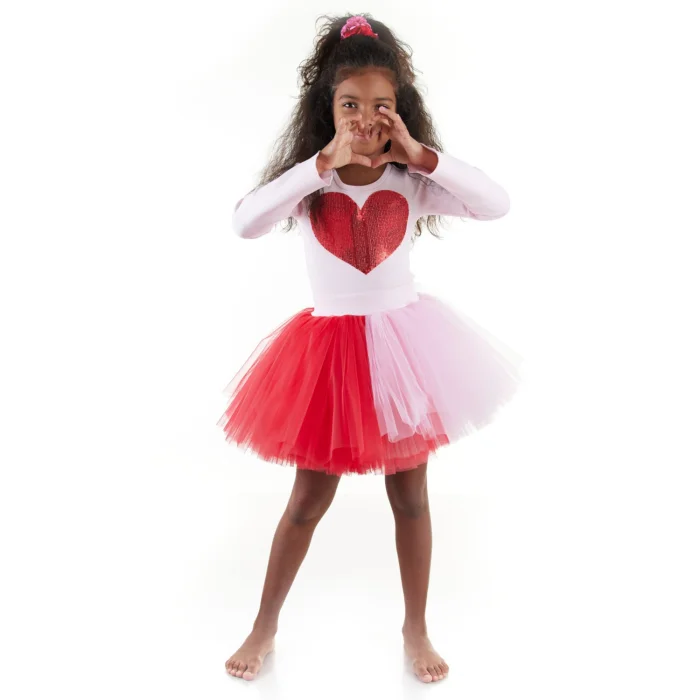 The third piece of the collection is our Half & Half Tutu Skirt! This extra-fluffy witty tutu skirt is made of half red and half pink tulle, specially designed for the little ones who can't decide between two colors. You can combine it with the first piece of the collection, the Heart Blouse.
