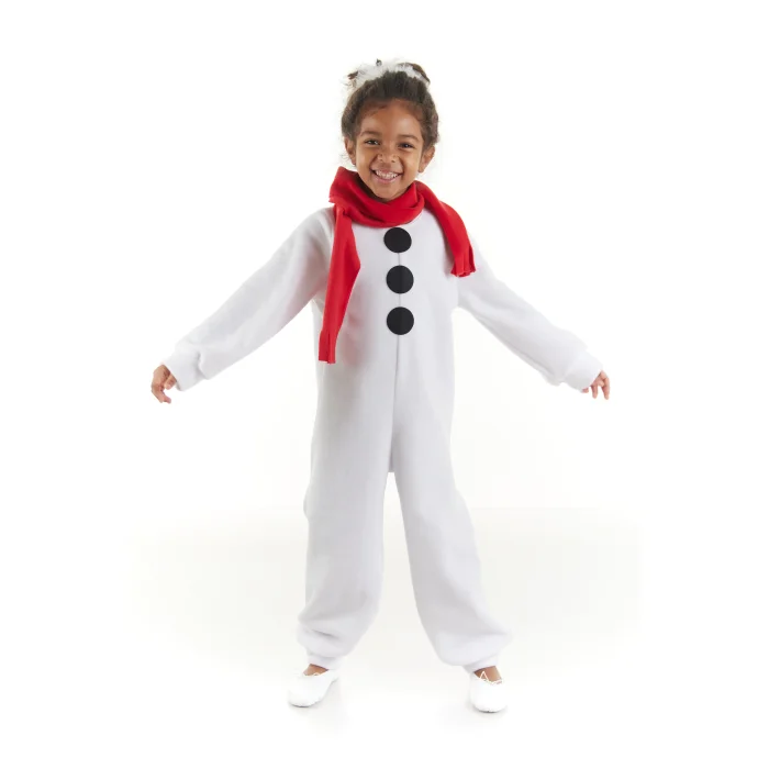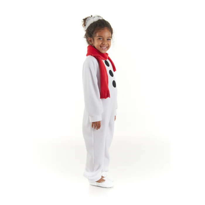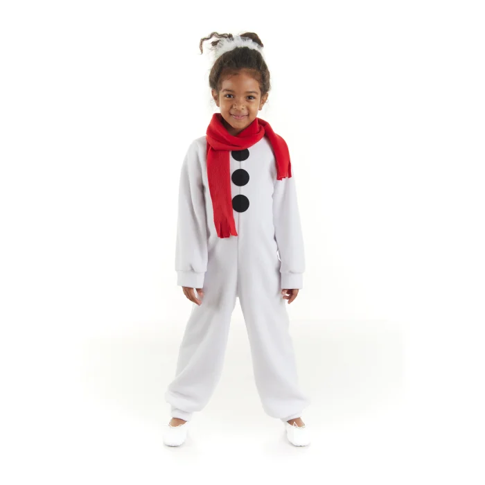 The costume consists of a white fleece onesie that zips in the back with "button" details on the front and a red scarf. The Snowman Onesie makes for a perfect cozy winter time outfit. All of our products are handmade in Istanbul in our little atelier by our all-women crew.