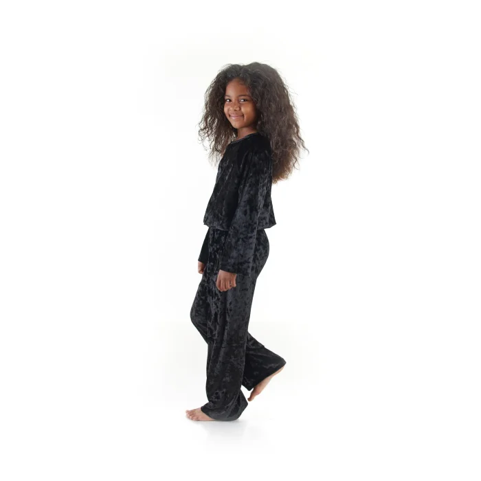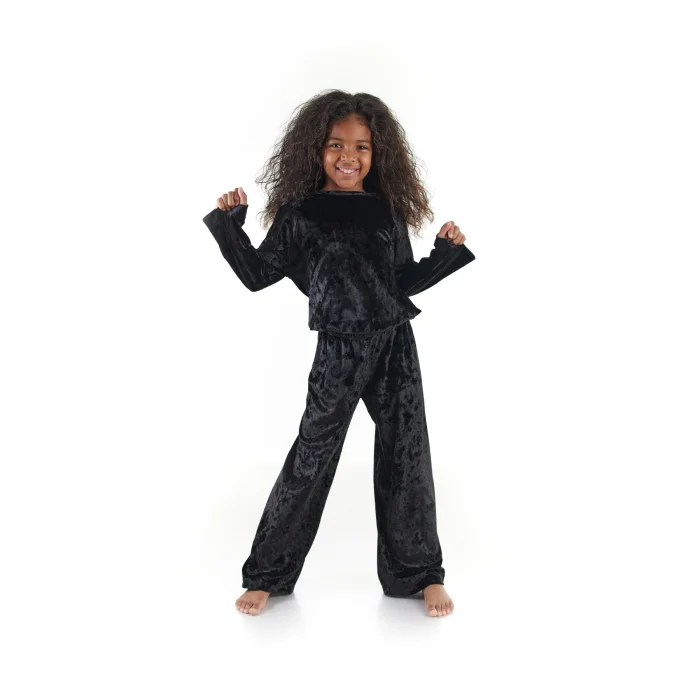 The Black Velvet Tracksuit Set is designed for the little ones who do not compromise on their comfort and style! Soft, cozy velvet fabric is used for this black casual suit. The loose-fitting tracksuit is specially designed for children to move freely in it. You can find neon orange and pink color options for this set, which is a great option for everyday use!