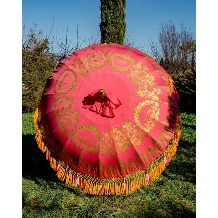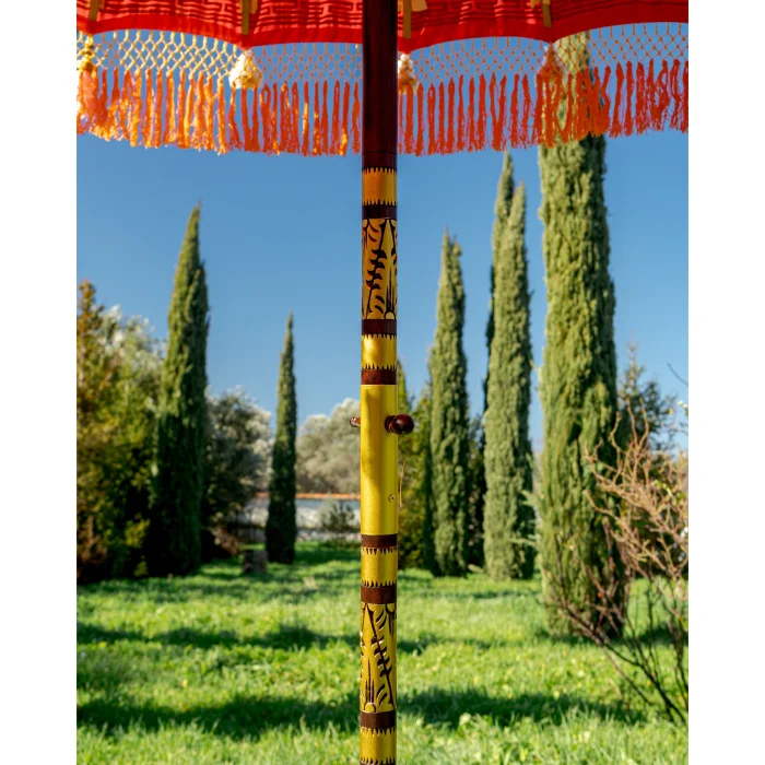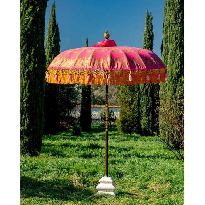 The product, which is completely handmade, is made in Bali. Not suitable for use in the rain. The stand is sold separately. Its diameter is 250 cm.