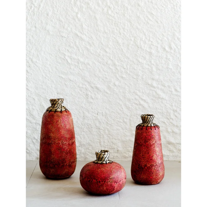 Handmade. It is an earthen vase. It is an imported product.