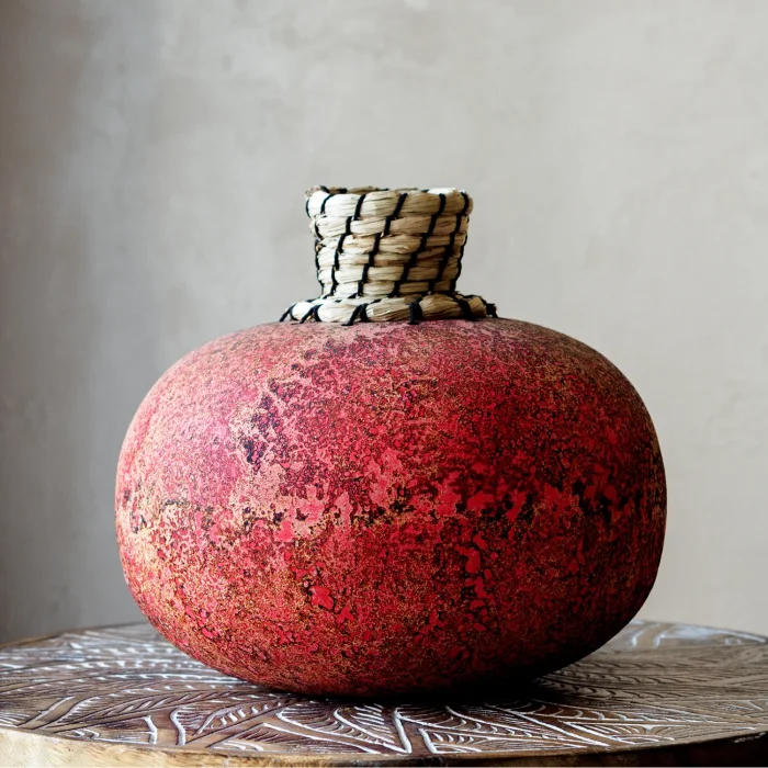 Handmade. It is an earthen vase. It is an imported product.