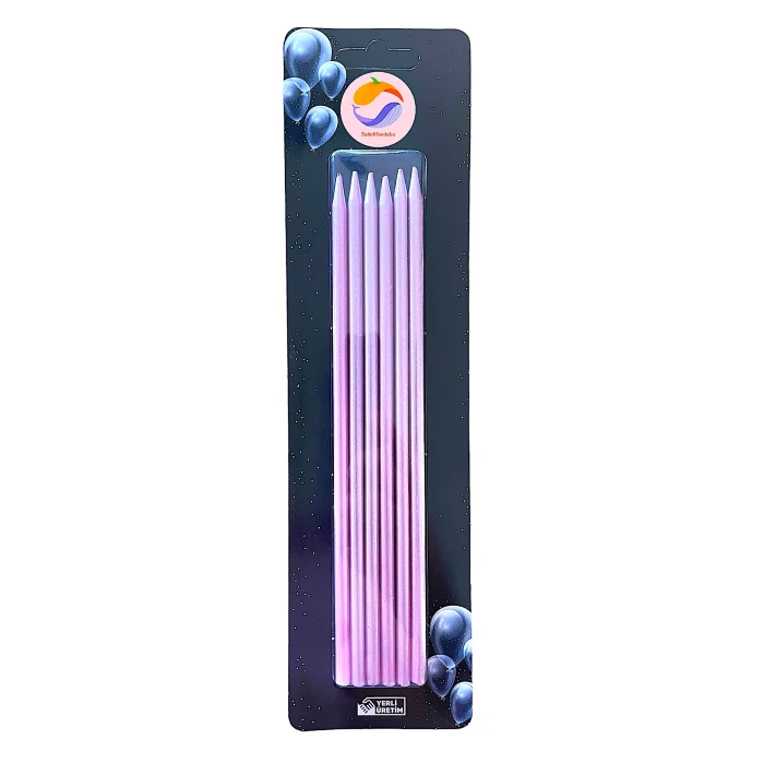 There are 6 pink gilded/leaf candles in the package. It is for cake top use, it is a birthday candle. Not suitable for candlestick use. Length 20 cm. There is no candle base