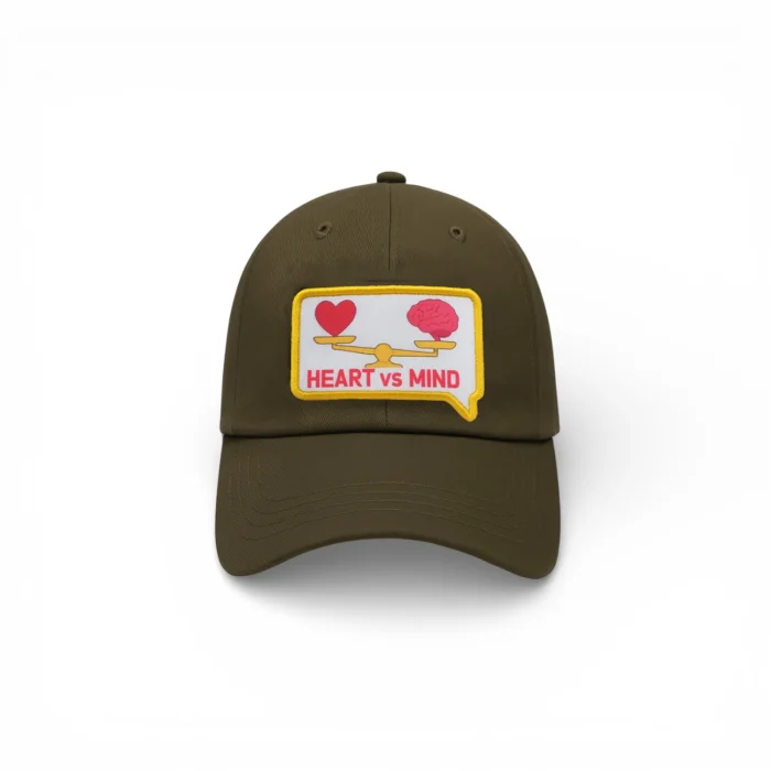 The Panther Pack combination includes any one of the 100% cotton caps in various colors (black, heather grey, burgundy, navy, brown, green) + a hand-drawn design image and a plug-in, interchangeable Heart vs Mind patch + a multifunctional pouch with a zipper attached to the back strap.