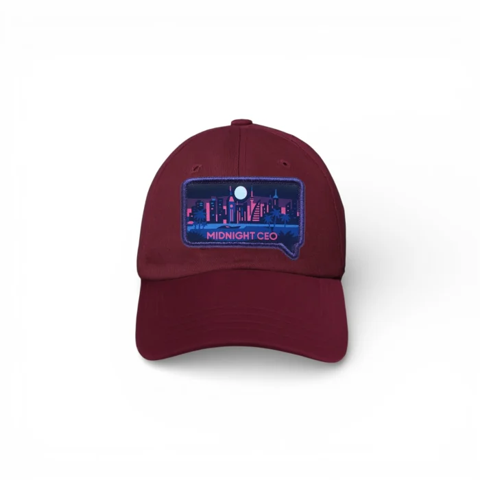 The Panther Pack combination includes any one of the 100% cotton caps in various colors (black, heather grey, burgundy, navy, brown, green) + a hand-drawn design image and a plug-in, interchangeable Midnight CEO patch + a multifunctional pouch with a zipper attached to the back strap.