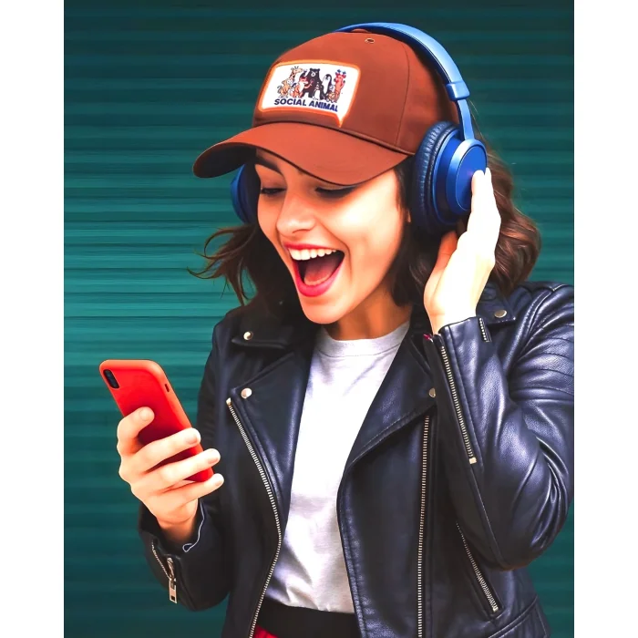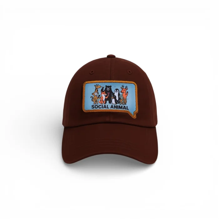 The Panther Pack combination includes any one of the 100% cotton caps in various colors (black, heather grey, burgundy, navy, brown, green) + a hand-drawn design image and a plug-in, interchangeable Social Animal patch + a multifunctional pouch with a zipper attached to the back strap.