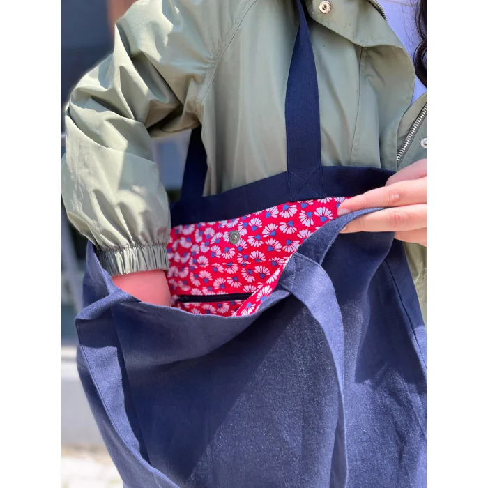 Solid color woven linen on the outside, colorful and striped lining on the inside. A total of 3 eyes, 1 with zipper. Magnetic mouth closure. The gift comes with a removable raffia brooch.
