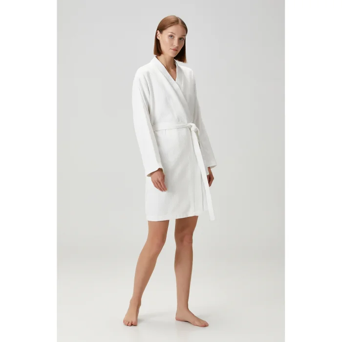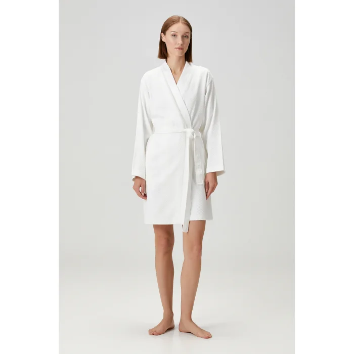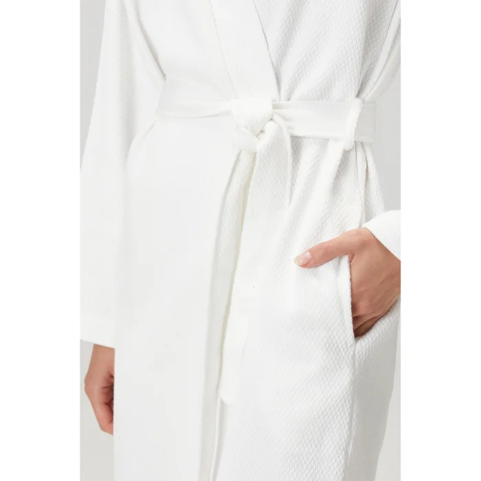 Baklava Bathrobe offers elegance and comfort together with its elegant diamond patterns. Its 100% cotton texture provides excellent comfort after bathing with its soft and absorbent properties. Modern and sophisticated color options adapt to every style and add an elegant touch to your daily routine. This bathrobe, which is both aesthetic and functional, combines comfort and elegance.